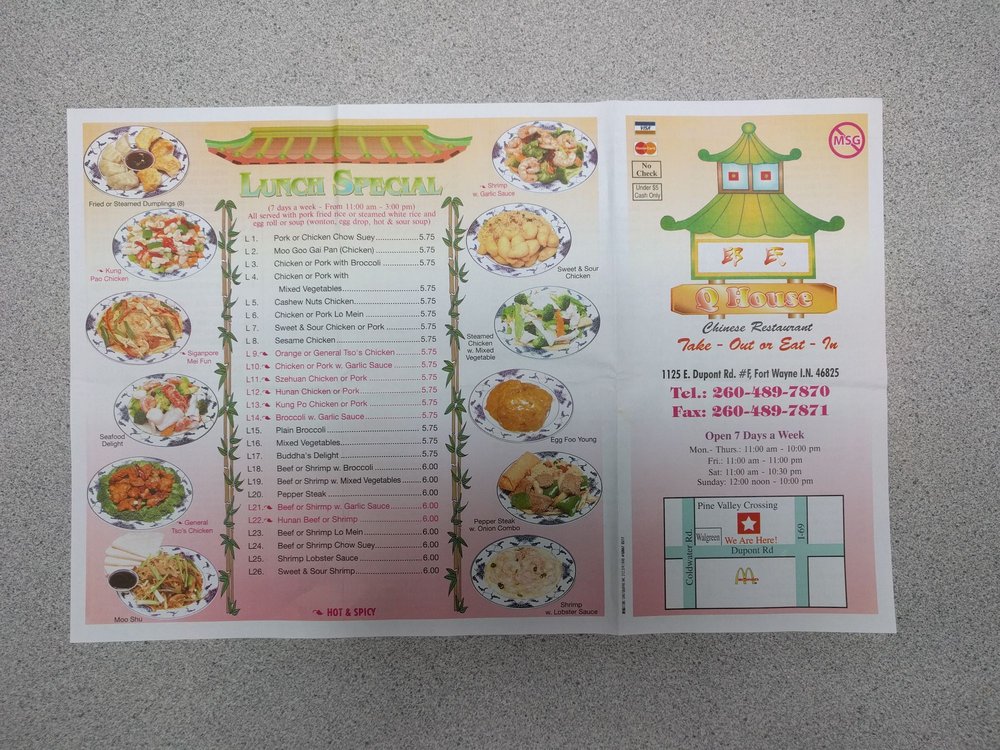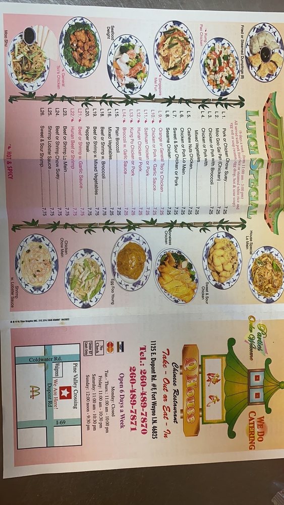 Q House, a Chinese restaurant located in Fort Wayne, offers a variety of menu options for both dine-in and takeout. Known for its fast service and delicious food, customers rave about the reasonable prices and flavorful dishes. The hot and sour soup, vegetable Mei Fun, and Szechuan shrimp are customer favorites, with generous portions and a perfect blend of flavors. The restaurant also provides many vegetarian options, making it a great choice for all dietary preferences. With a casual yet classy ambiance, Q House is a great spot for lunch or dinner. The friendly staff and efficient service ensure a pleasant dining experience for patrons. Whether you're in the mood for traditional Chinese favorites or looking to try something new, Q House is a top choice for authentic cuisine in Fort Wayne.